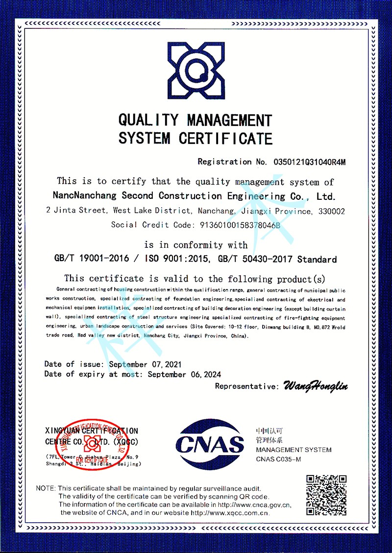 質(zhì)量管理體系認(rèn)證證書(shū)